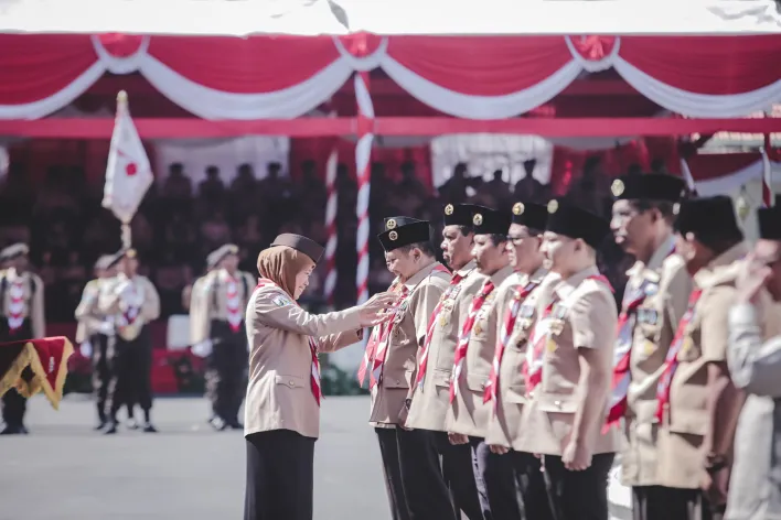 Kakak Khofifah menekankan, dalam era digital yang penuh disrupsi, pramuka memiliki peran penting sebagai penjaga dan pengisi semangat cinta tanah air.